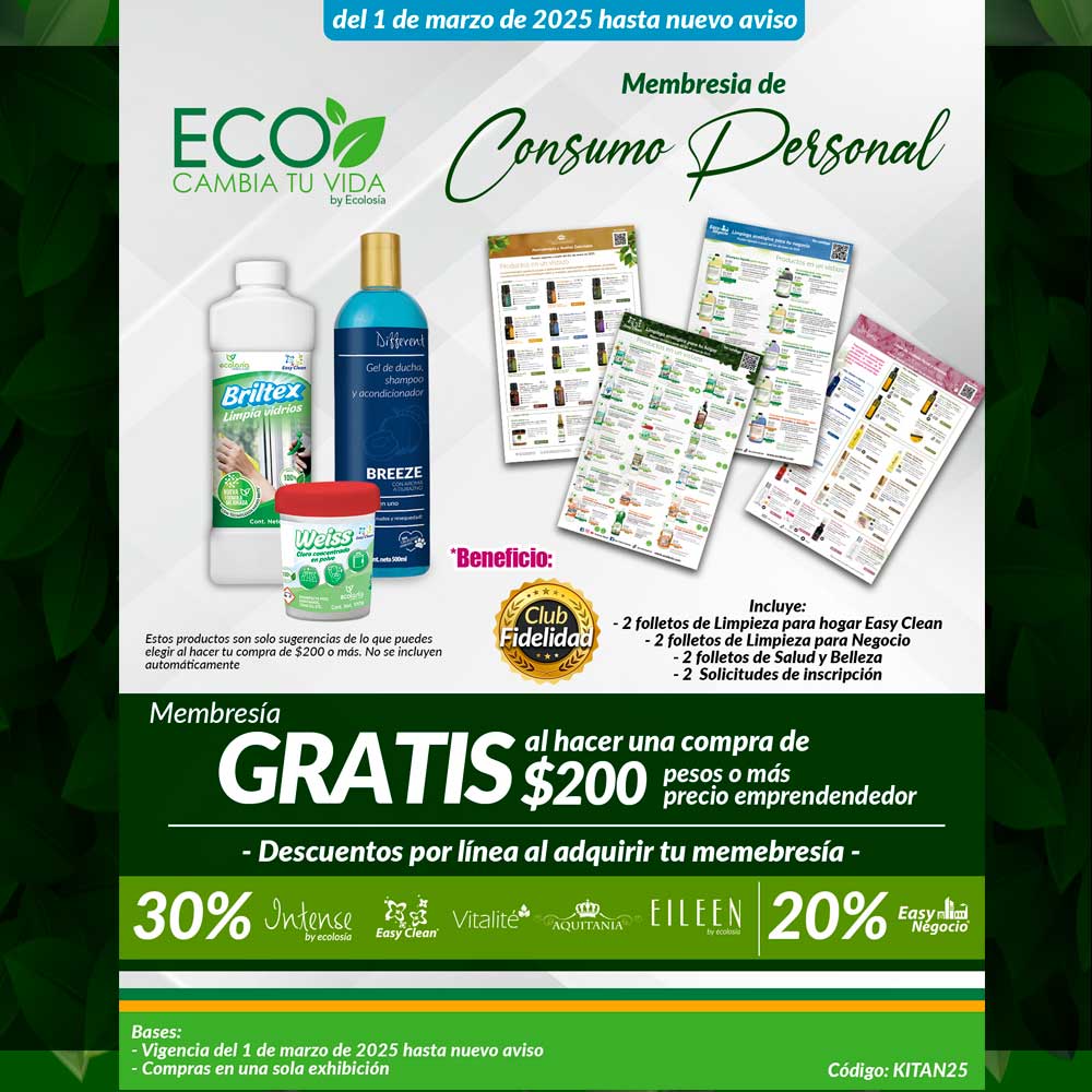 En Eco Cambia Tu Vida encontrarás increíbles opciones para inscribirte al negocio que cambiará tu vida, contamos con productos de limpieza de alta calidad para tu hogar y negocio, productos de belleza con calidad SPA, aromaterapia, suplementos alimenticios, cosméticos hechos a base de minerales, productos con Tecnología Celular Inteligente y nuestra nueva línea de prendas moldeadoras SHAPE & HEALTH